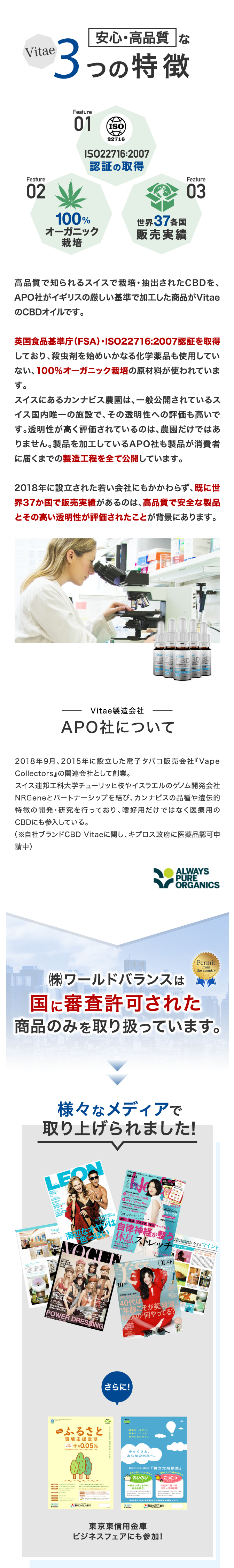 以前はCBD5%濃度を使っていましたが、効果を感じるときと感じない時があり「こんなものなのかな」と思っていました。そんな時、このCBD10%濃度の商品を見つけすぐに購入を決めました。商品と共にCBDの正しい摂取方法やセッティング方法が分かりやすく書かれたリーフレットも頂けたので、以前より効果を感じることができています。
